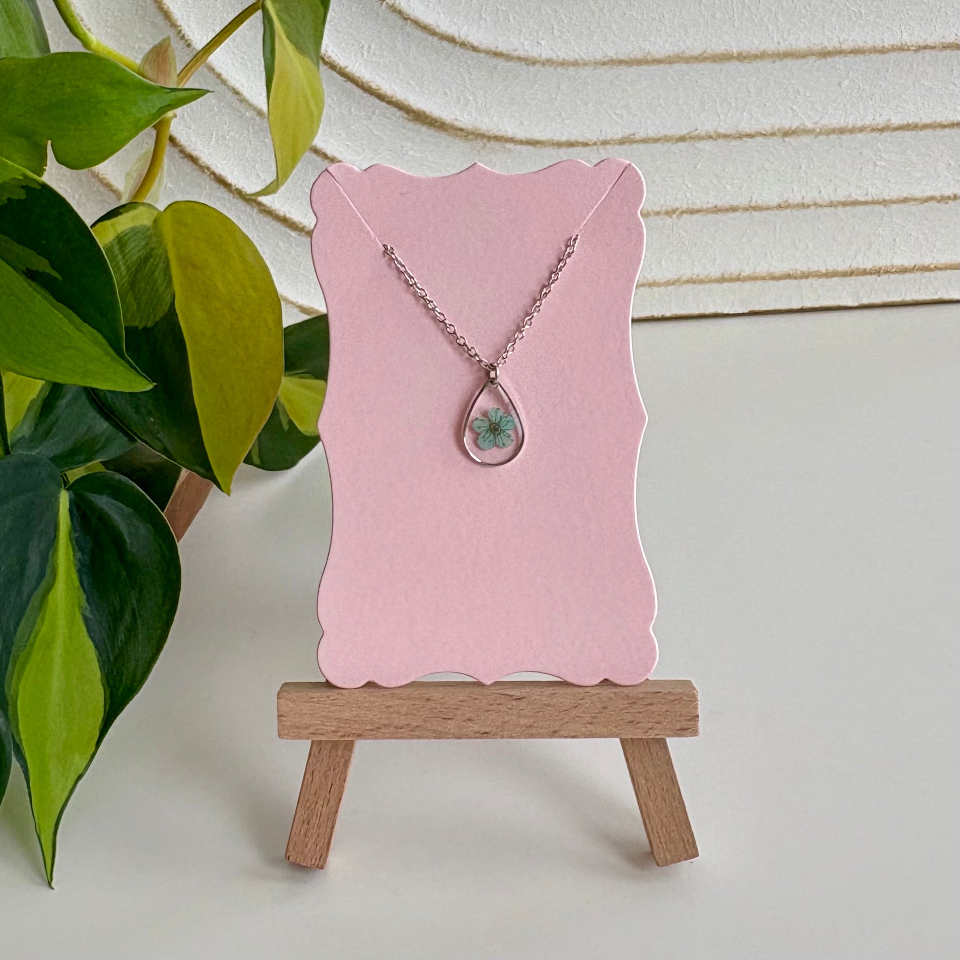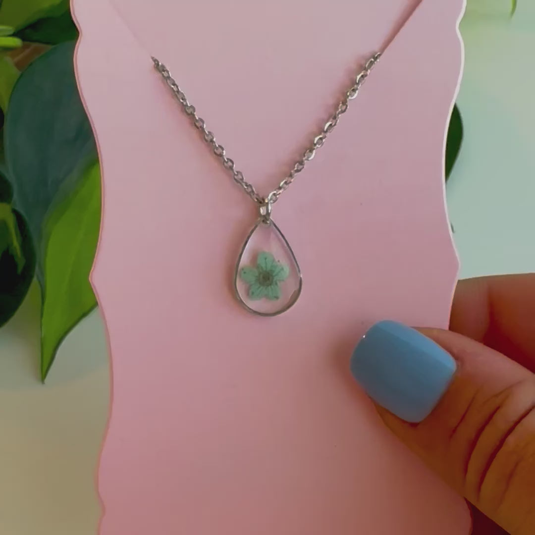 Materials: Real Dried Pressed Flowers, UV Resin, Stainless Steel 16"-18" Adjustable Chain