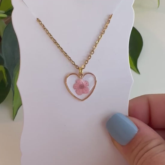 Materials: Real Dried Pressed Flowers, UV Resin, 18k Gold Plated 16"-18" Adjustable Chain
