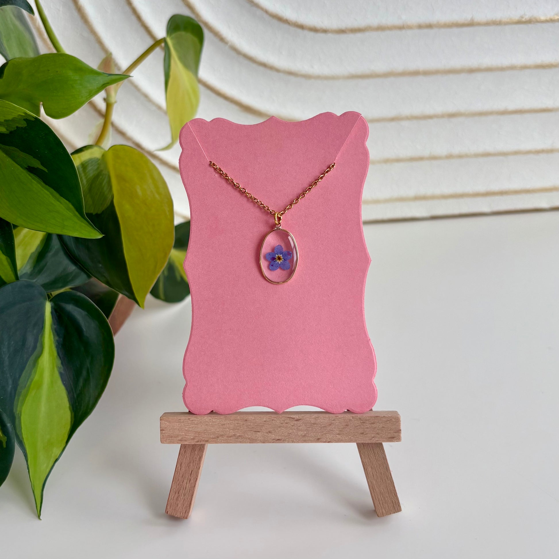 Materials: Real Dried Pressed Flowers, UV Resin, 18k Gold Plated 16"-18" Adjustable Chain
