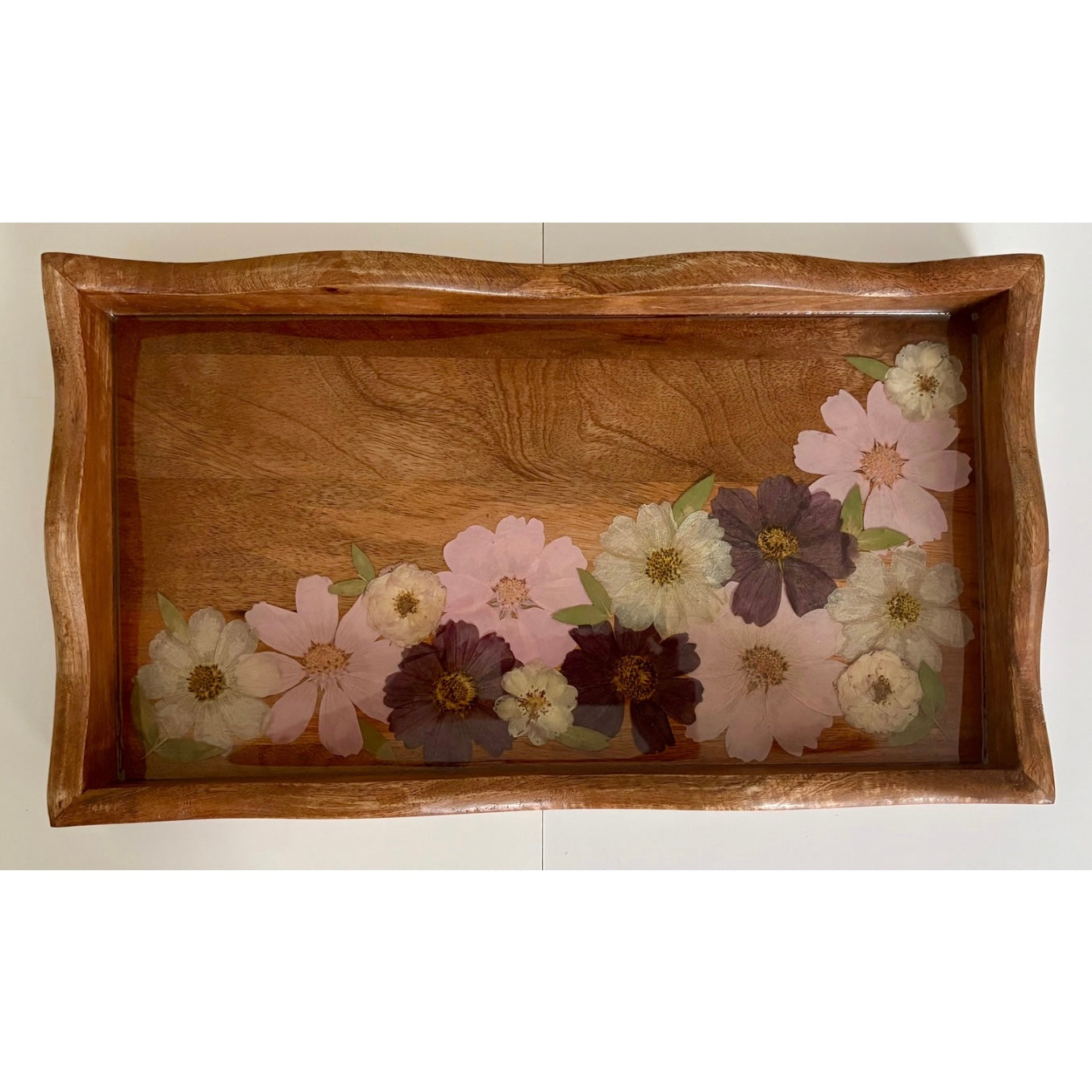 Materials: Acacia Wood, Real Dried Pressed Flowers, Epoxy Resin